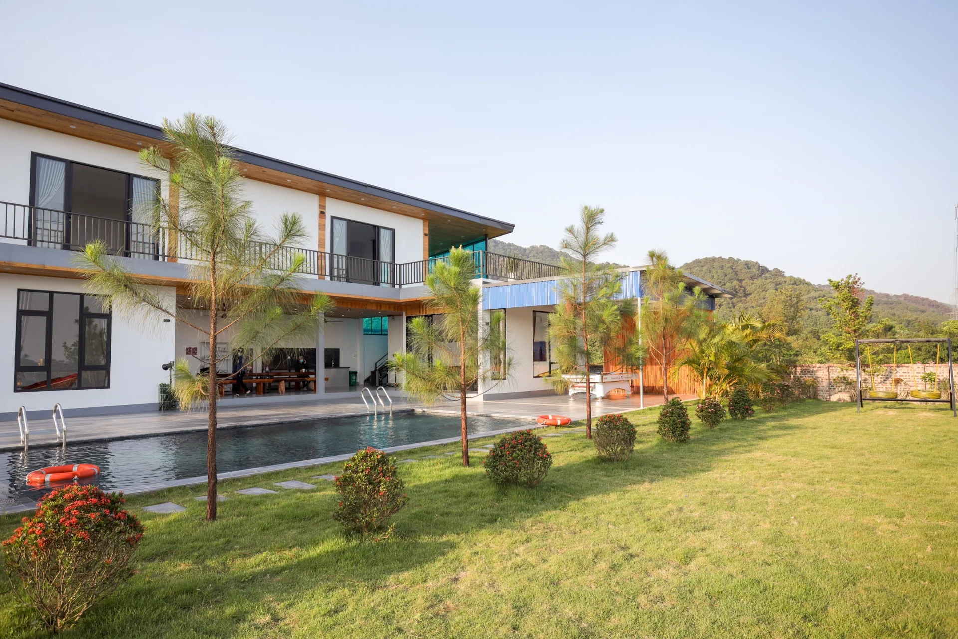 + Bể bơi vô cực (10m x 5m, sâu 1.5m), hệ thống lọc nước an toàn, đảm bảo sức khoẻ