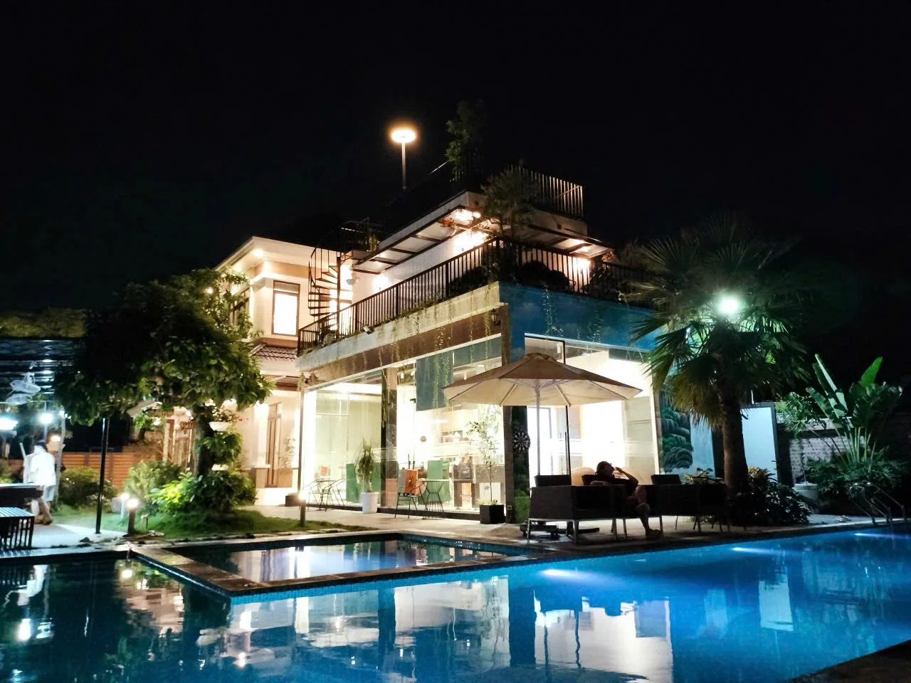 + Bể bơi riêng ngoài trời siêu đẹp rộng 90m2, có sục Zacuzzi và Massage🏊♂️.