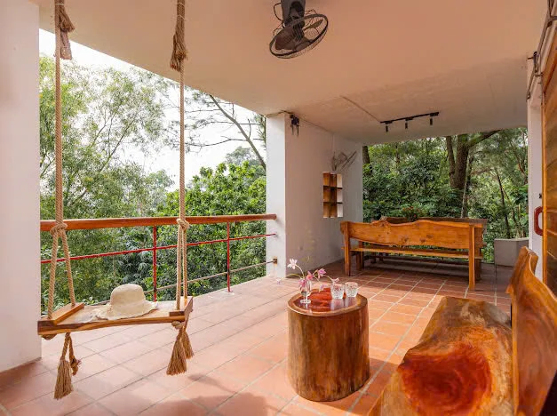 + 1 Phòng khách view thiên nhiên mở thoáng nối thông bếp và khu vực ăn uống view núi rừng có điều hoà
