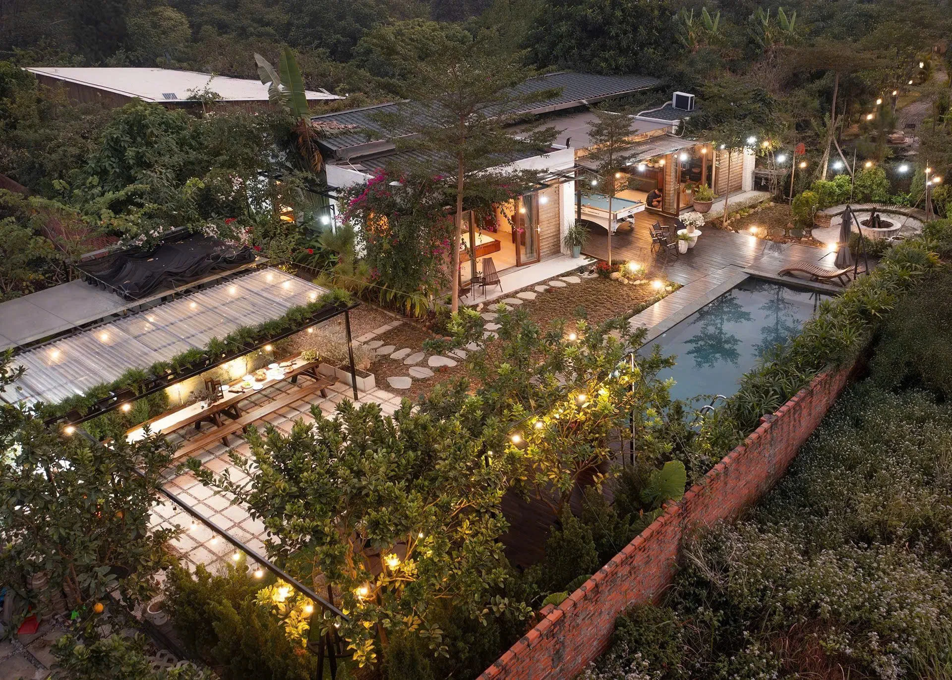 - VILLA nằm trong khuôn viên rộng 1200m2, diện tích nhà 220m2. Có bể bơi riêng, view rừng núi. Có khu nướng BBQ, khu vực ăn ngoài trời