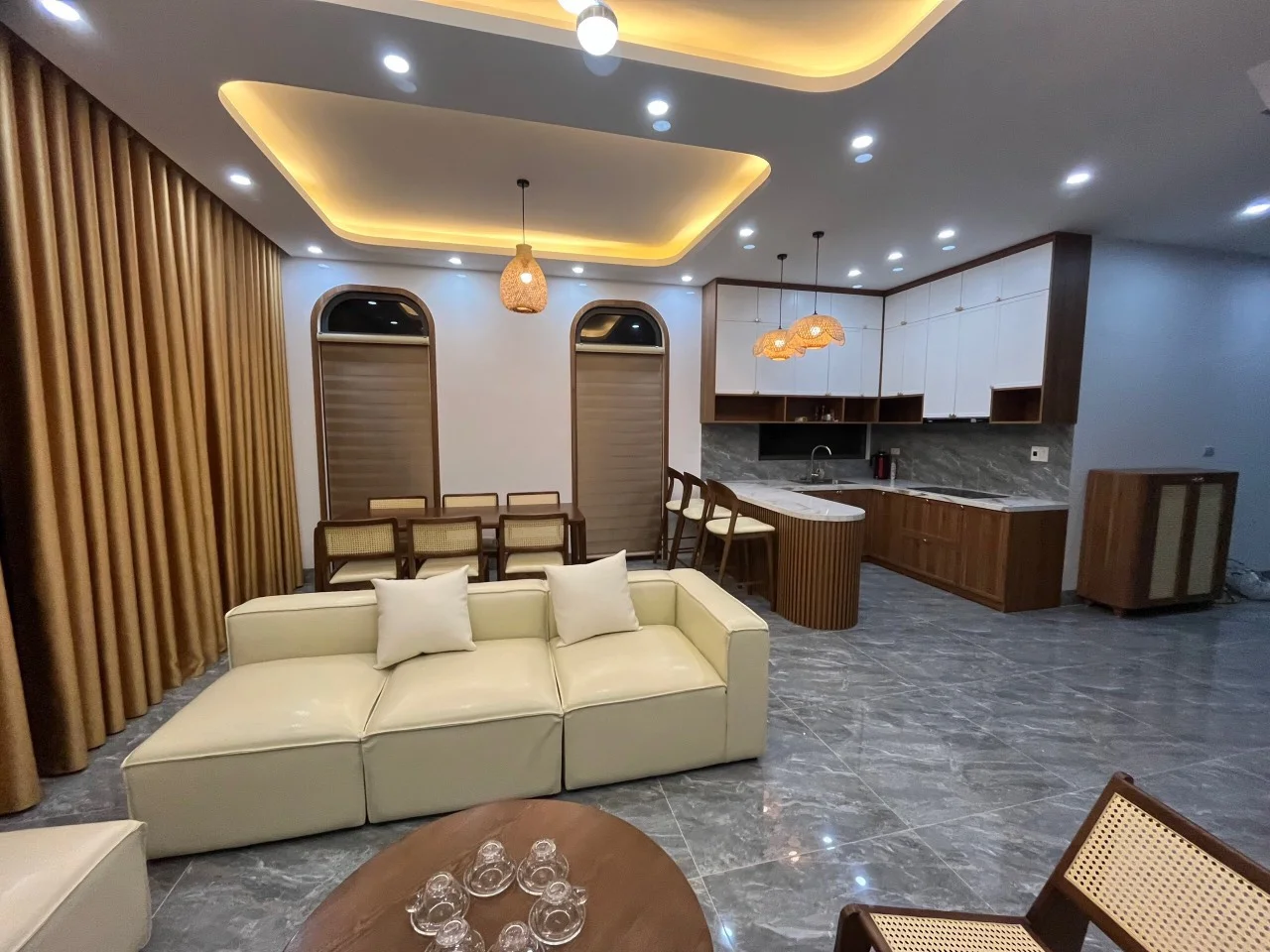 + 1 phòng khách với đầy đủ tiện nghi, có quầy bar, sofa nhập khẩu, bàn ăn.